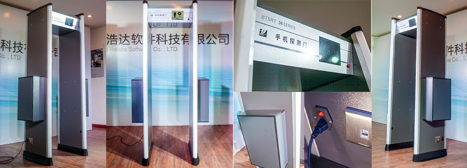 將本產品安裝在禁止帶入手機和電子產品通道的入口處,被檢測人員如有攜帶手機等違禁物品安檢時,本產品將給予鈴聲告警提示。按提示交出違禁物品后,被檢測人員在經過安檢合格后方可進入涉密區域。使用手機探測系統與該保密部門的安檢流程和相關的管理制度相結合,完全做到真實有效的解決手機防帶入問題。